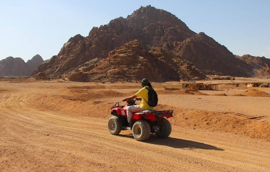 Quad bike safari in the desert of Sharm El Sheikh offers a thrilling opportunity to enjoy the adrenaline and breathtaking landscapes of the Sinai Desert. The motor safari includes not only riding quad bikes but also seeing the majestic Sinai Mountains, hearing the echo of your voice, and capturing beautiful photos in unique spots.